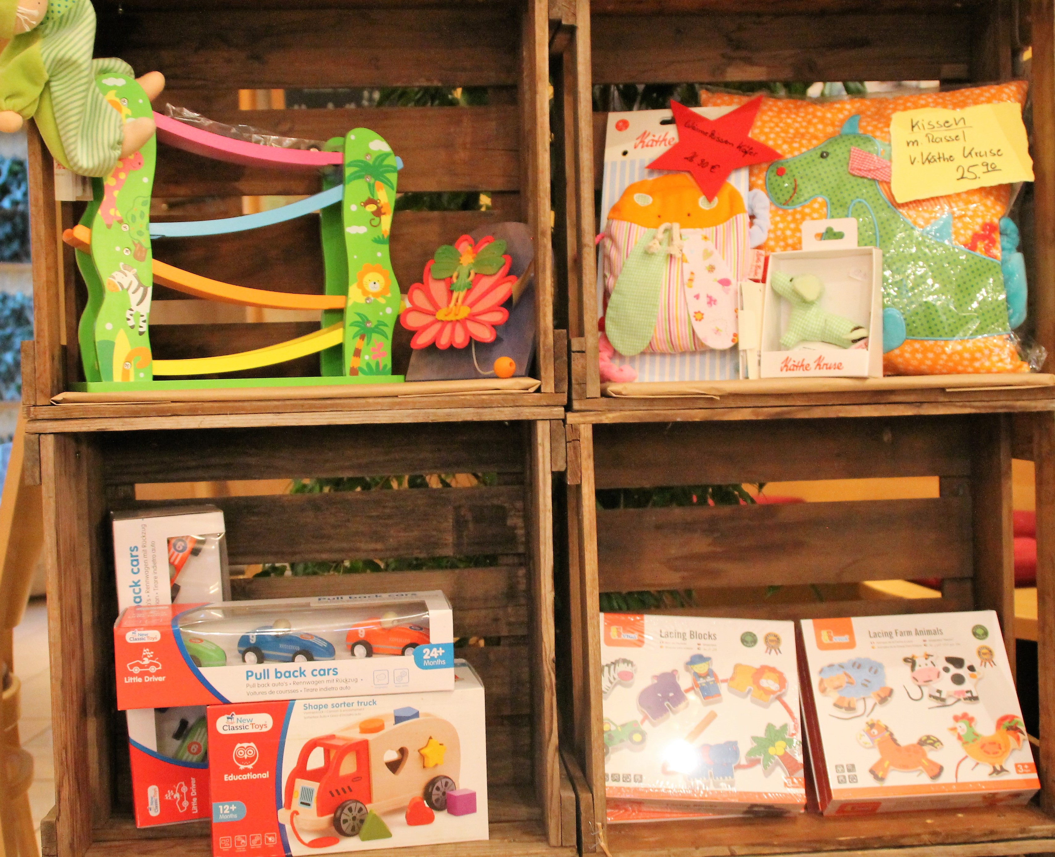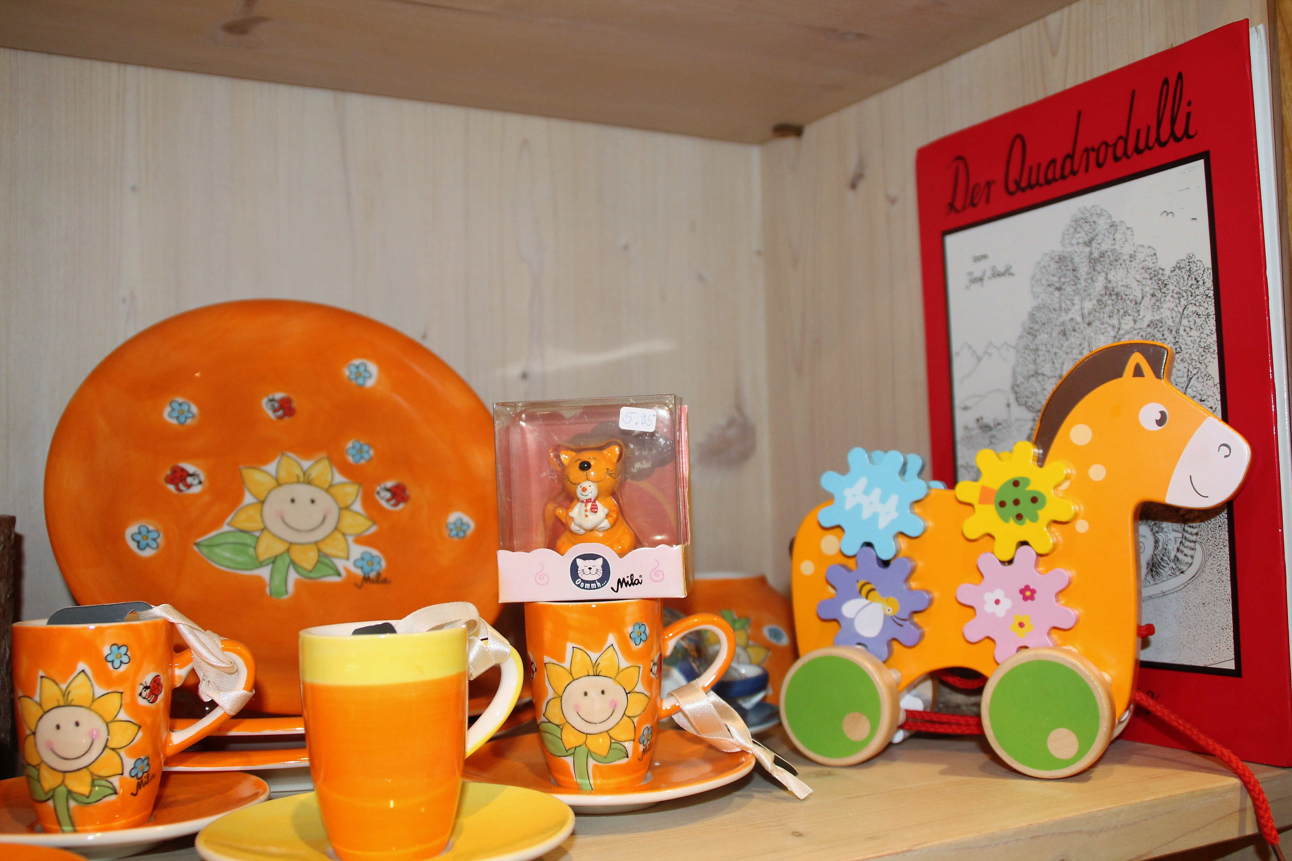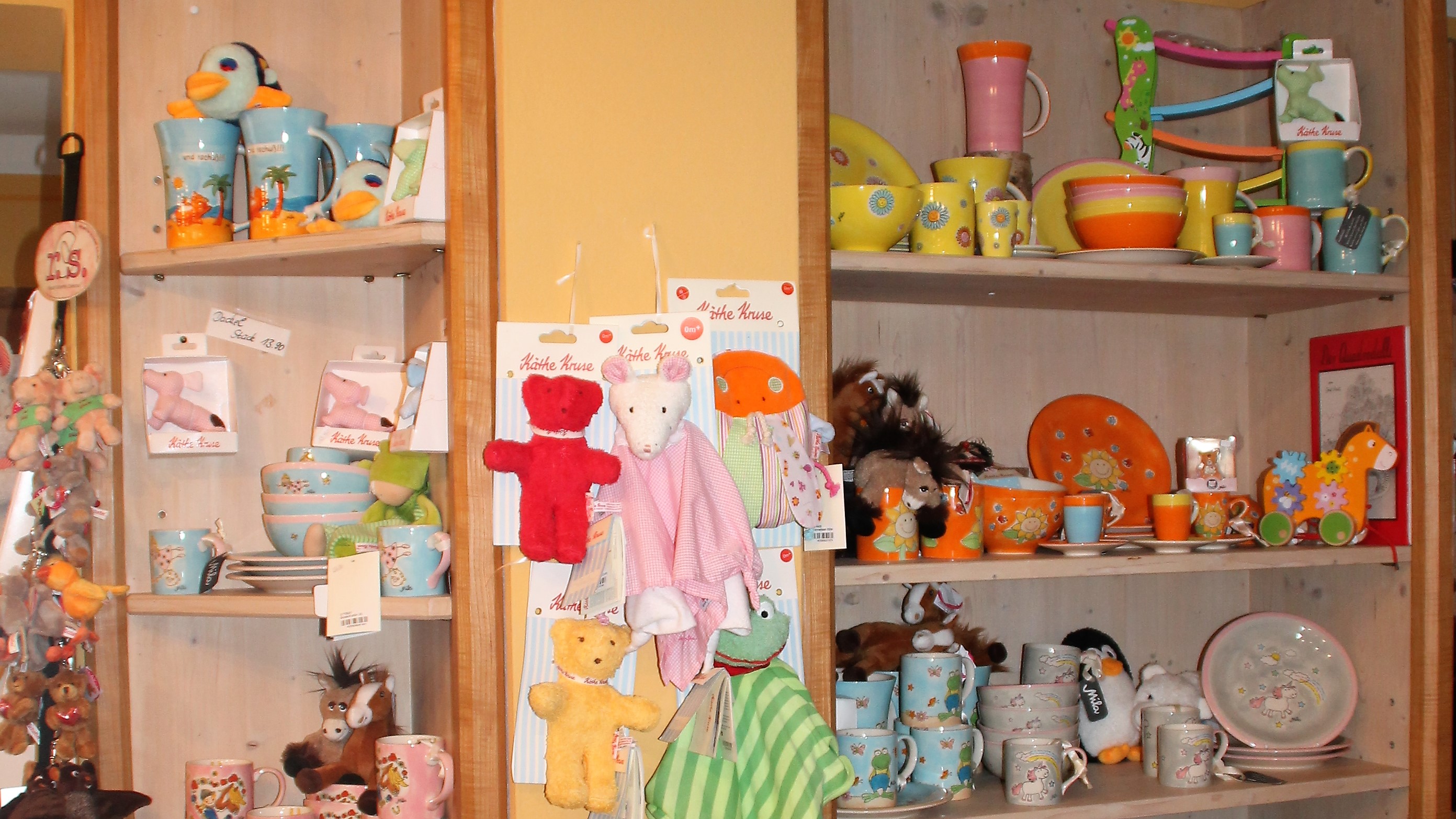 Neben Pralinen, Eis, Kaffee und Kuchen erhalten Sie in unserem Betrieb auch diverse hochwertige Spielwaren und Geschirr von Firmen wie Mila, Käthe Kruse, Schaffer oder Eitech.